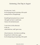 by Leigh AnneMy last few days are intentionalin thought, activity and location.Packing and repacking are certainly on the list,and so are final precious moments spent with special people,but also time in this… Read more: Sanctuary - Sara