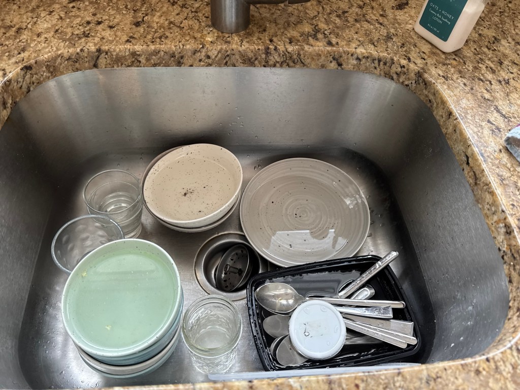 Quite uncharacteristically, I couldn’t empty the dishwasher. So many loads over so many days had left me unwilling to unload one more fork or bowl. And so I lived out of it instead. In the morning, I chose a small bowl, spoon and glass for my cereal and juice. At lunch, I chose a plate and spoon for my usual vegetablish concoction. I packed a spoon and fork in my lunch bag for the day’s snacks. And at dinner, I dove back in for a plate and utensils to match the meal at hand. After each sitting, I would rinse my dishes and stack them neatly in the sink.