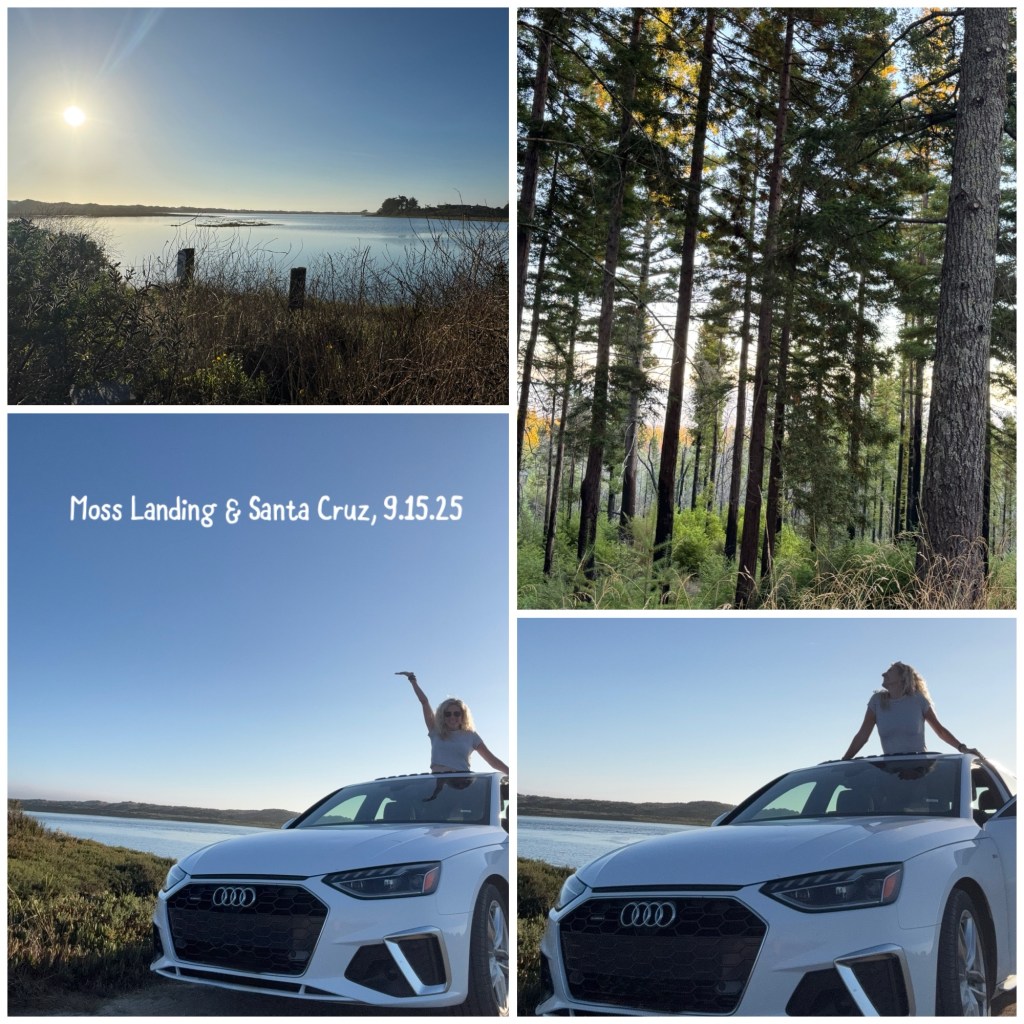 My day wrapped by stopping in Moss Landing on my way to my Airbnb in Santa Cruz. The pictures of me and the sporty little Audi were taken of me, by me, because that’s the theme of this little road trip! My friend texted today and said, “How is my road warrior?” and I responded, “Bad ass, baby!!”