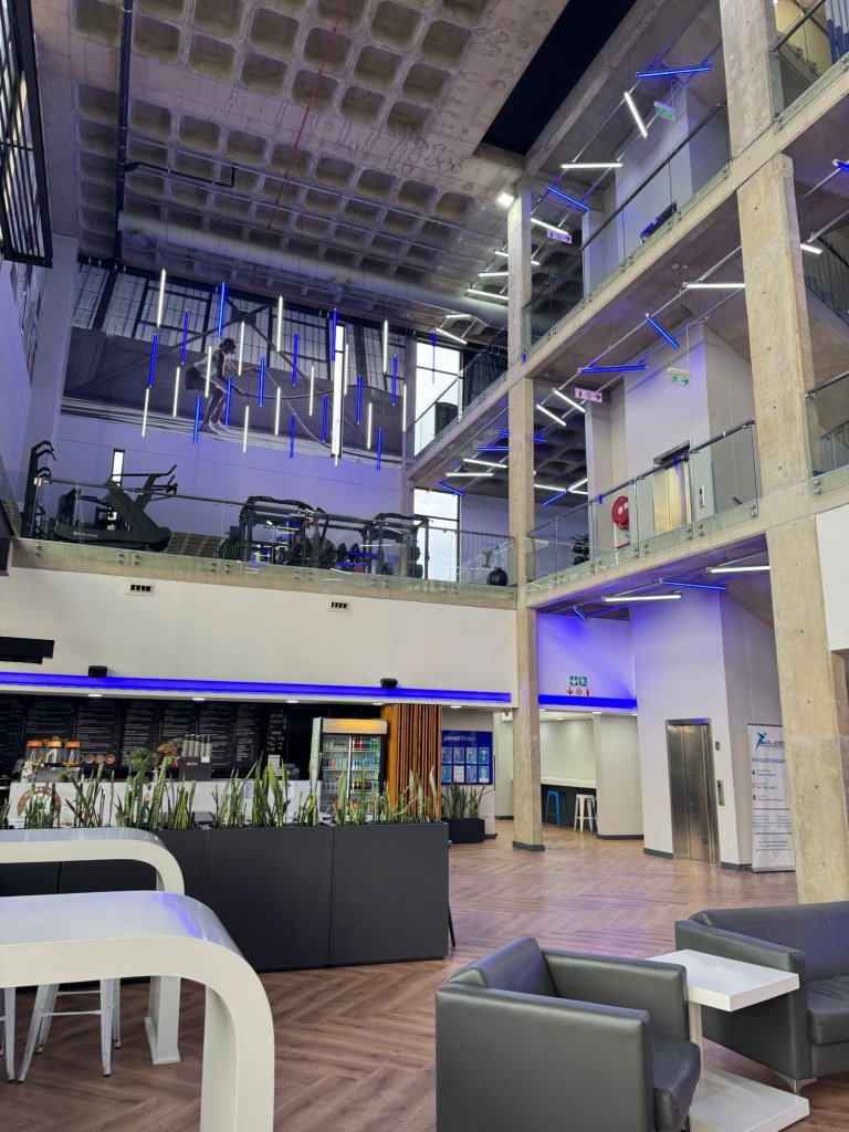 From there, I drove to Planet Fitness, which is .4 miles from my house (.64 kilometers as I’m trying to be better at all my conversions). I was struck by how big and modern it was, inside and out. Unlike in the States, it is tastefully decorated, with no purple and yellow to be found. There were four floors of fitness, including a lap pool and a rooftop track! There are rooms for spin class, but it’s not called that (it’s called cycling), hot yoga and pilates, all free with membership. There is a Booty Factory room, which promises I’ll go home with a better butt, and tons of equipment. He told me there was Hydrox up on the roof, but it turns out I heard wrong and instead of the original Oreo, there was this bootcamp thing that seemed super intimidating (Gigi later told me it’s Hyrox). It involved climbing a rope with a super heavy weighted ball and putting it on the roof. Hmm. A very nice young gentleman spoke to me about America and South Africa and later, as I was jogging around the track, his buddy was taking pictures of his back and biceps against the city and sunset. Perhaps I rubbed elbows with a fitness influencer. Shocking he didn’t want to feature me, as well, in his photos! I can also go to other PFs and will try one with Pilates reformers. The price for all this? $17! $4 less than i pay in New Jersey. For anyone wishing to visit, I also get 4 free weeklong passes for a guest! Hint, hint! I did not see any cleaning supplies to wipe down machines after using, so either they don’t do that here or I was very rude. Also, the young man who took me around at the gym said I’m probably mistaken for an Afrikaner a good amount. He said there are a large majority living here in Pretoria. He described Pretoria as chill and has 11 different main languages heard here, most common being Afrikaans, though English is the common language.