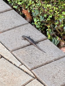 We have the cutest lizards here. One guy on the sidewalk at school yesterday was a chubby, slow thing and let me take a picture of him.