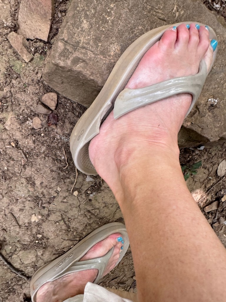 Maria and I stayed three hours and then I headed back to grab a few things for lunch this week and maybe find some picture frames (sizing is not the same here). But first, I thought, let me visit my zebras! I thought I’d only park and go say hi and take pictures, especially with my flowy brunch outfit on and flip flops. The zebras were first by the farmhouse and let me get so close. Two of them wrapped and rubbed necks and I was so in love with them, I didn’t think to raise my camera. They eventually walked into the field, so I followed. And there was an ostrich and some big black and white bird that made me think of an eagle. Then there were some springbok and then there was the entrance to the hiking trail. I’ll just go as far as the bird hide, I thought, and come back and get on with my day. Two miles later, I had taken in such beautiful sights and sounds and couldn’t believe I was doing in it my flip flops when crunch! My foot rolled off a rock and my flip flop snapped. I felt the pain right away, but tried to keep walking by gripping it with my toes. Slow going, I thought, and I’ll be fine. But I stepped on another rock and my flip flop shifted out and away and my foot was screaming in pain. I limped to a bench and sat for awhile wondering what my plan was. Seeing no other plan than to keep moving, I took off my shoes and limped barefoot the two miles back to the car.