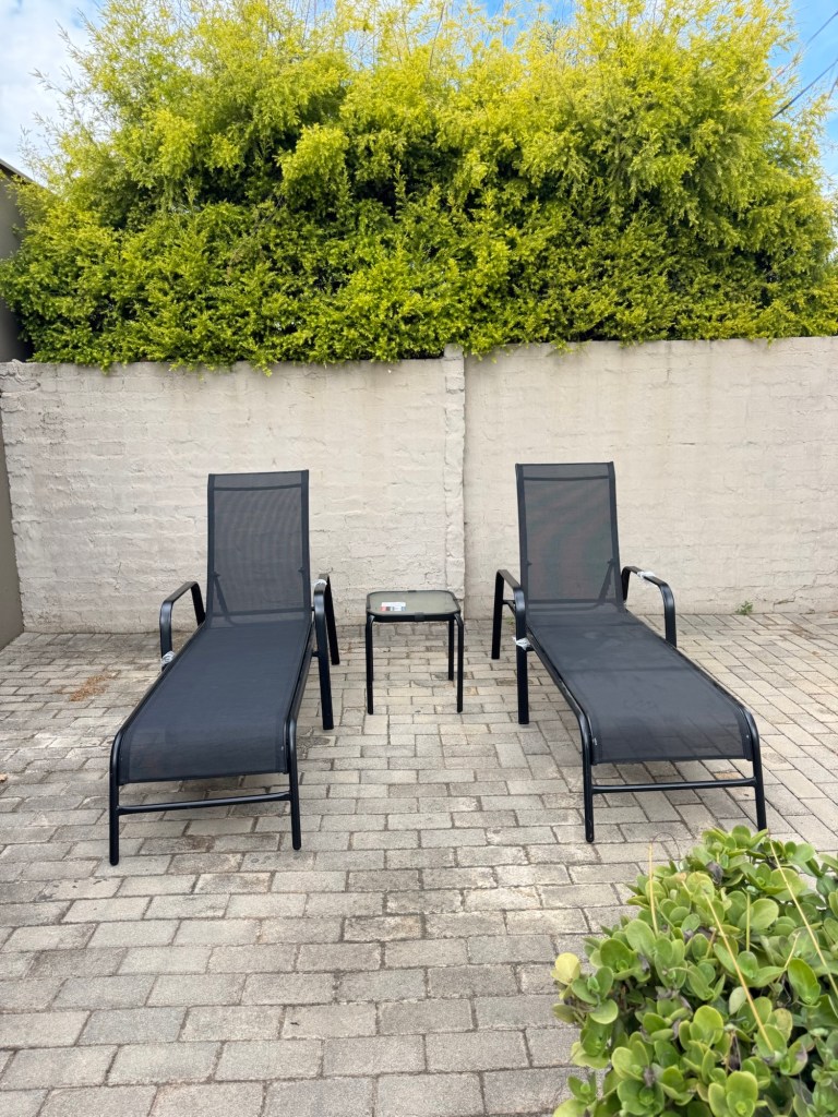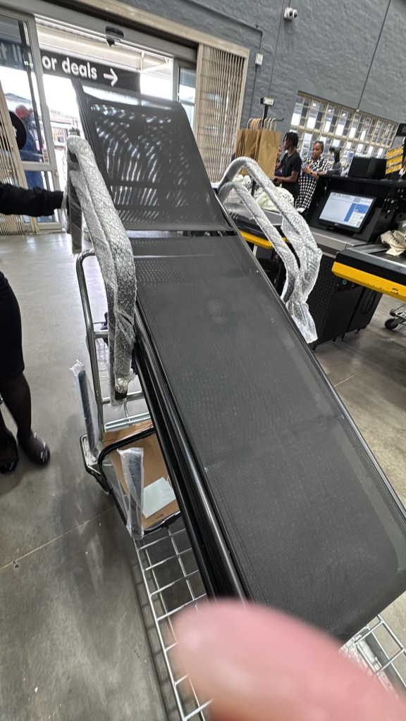 I got up and out relatively early to do my grocery shopping and was thrilled to find two loungers and a table on promotion at Makro (Costco-like). I was wheeling them through the crowded store quite gently. Three parking lot attendees helped me load them into my tiny Toyota Starlet and I was able to unwedge them on my own at home and get them set up. I’m looking forward to reading out there. The weather has been gorgeous, even with the regular passing storms.