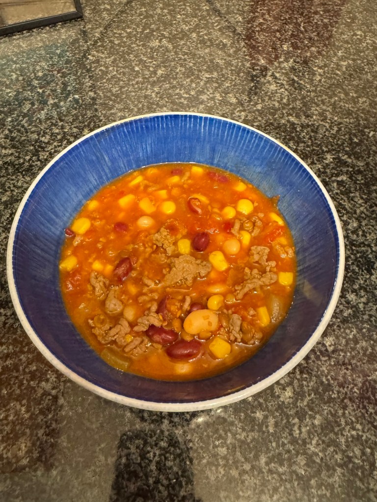 While Paul worked and we chatted, I made my first meal in my brand new pressure cooker/slow cooker/insta pot/you name it machine. I made chili with some unusual bean and even lentil choices and with minced beef and this really yummy chili sauce I got at the market on Saturday. It was easy to use and the house smelled amazing. I would typically put chili on in the morning and come home to it at the end of the day, house smelling amazing, but this took 20 minutes!! So now I have a working stove, oven and this bad boy!