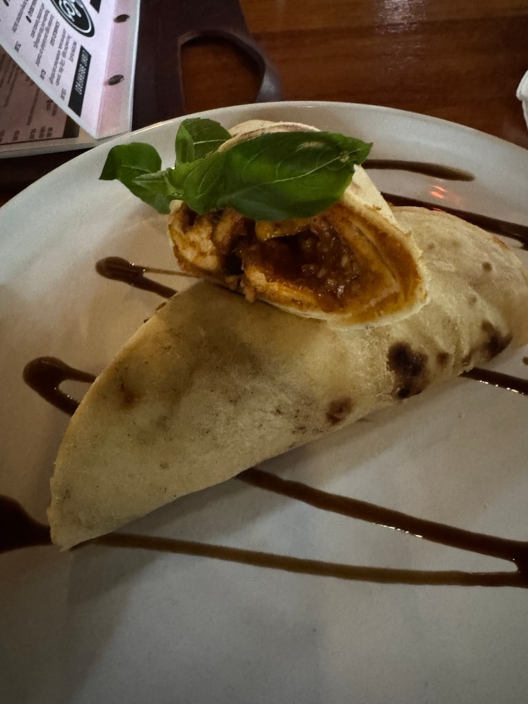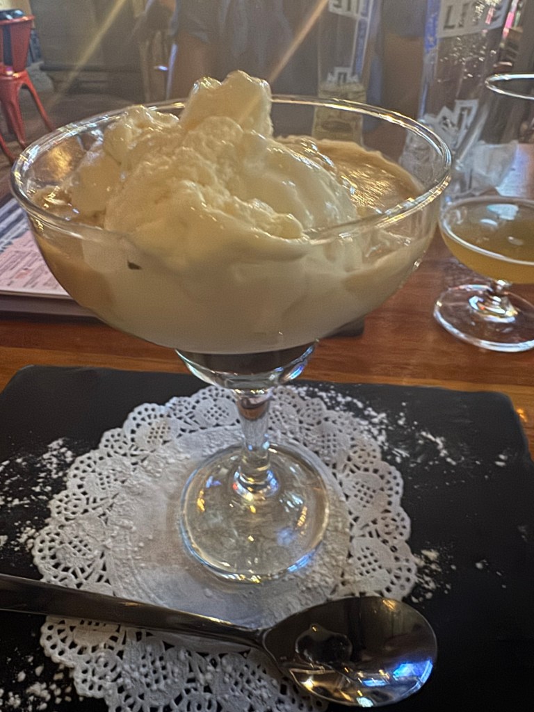 I was worried that our much anticipated happy hour would be rained out. We were going to a café near my house that has been on my list. We were going to be in an outside space downstairs, so that the smokers could smoke freely. The rain did stop, but everything was very wet. Instead, we stayed inside in The Bunker. Smokers sat by the window windows! I haven’t been indoors with a smoker in decades! Anyway, I pass Blos every week or so and thought it was just the stand you could see from the road and maybe a little seating area. Instead, it is massive, with party halls and even suites to stay in. There is a full-blown restaurant, as well. I had a wonderful IPA as we toasted the new year, but not looking to go home and cook, I had an amazing moroccan chicken wrapped in naan and an affogato for dessert, as well.