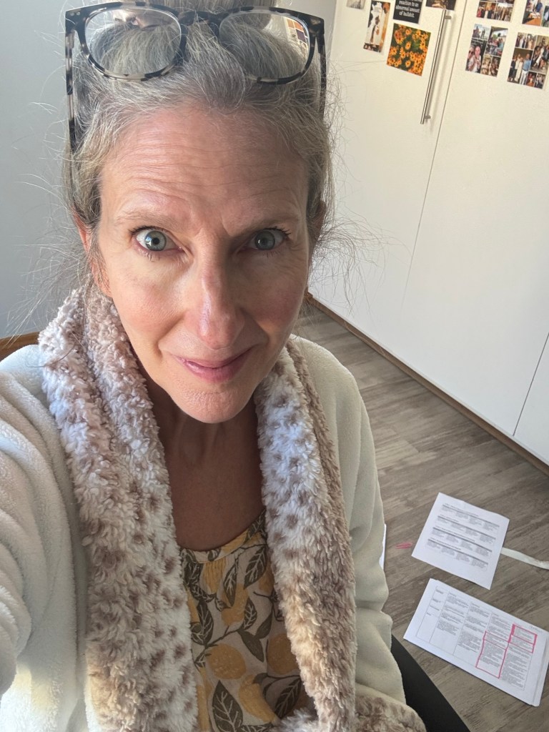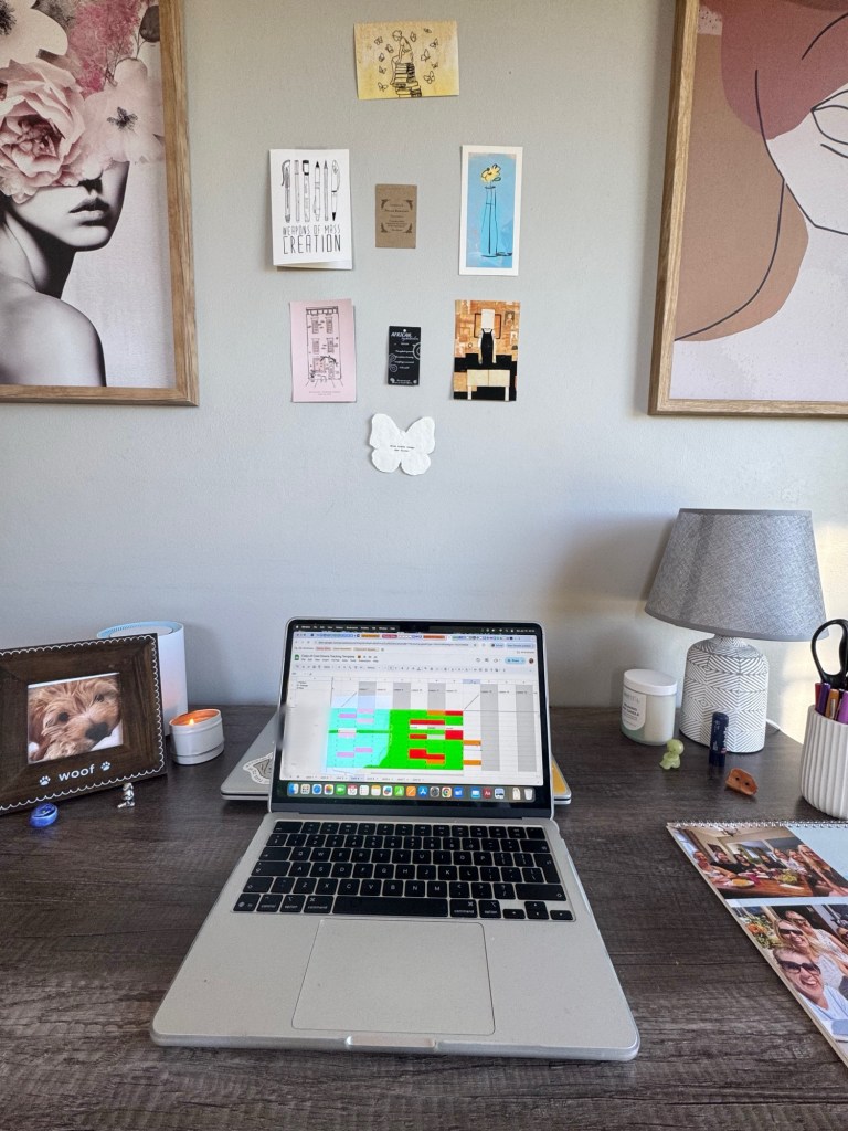 I woke up very early Sunday morning, and when I couldn’t go back to sleep, I decided to get up and get going, knowing it was report hard day. I’ve been waking up much earlier than usual since vacation, often between 5 o’clock and 530. I’m finding I’m enjoying having more time, rather than just waking up and being out the door in 30 minutes. I’m reclaiming my childhood morning person persona! Anyway, this morning was 4 AM. It was chilly so I put on my robe and had some breakfast and drank some tea before setting up my office.
