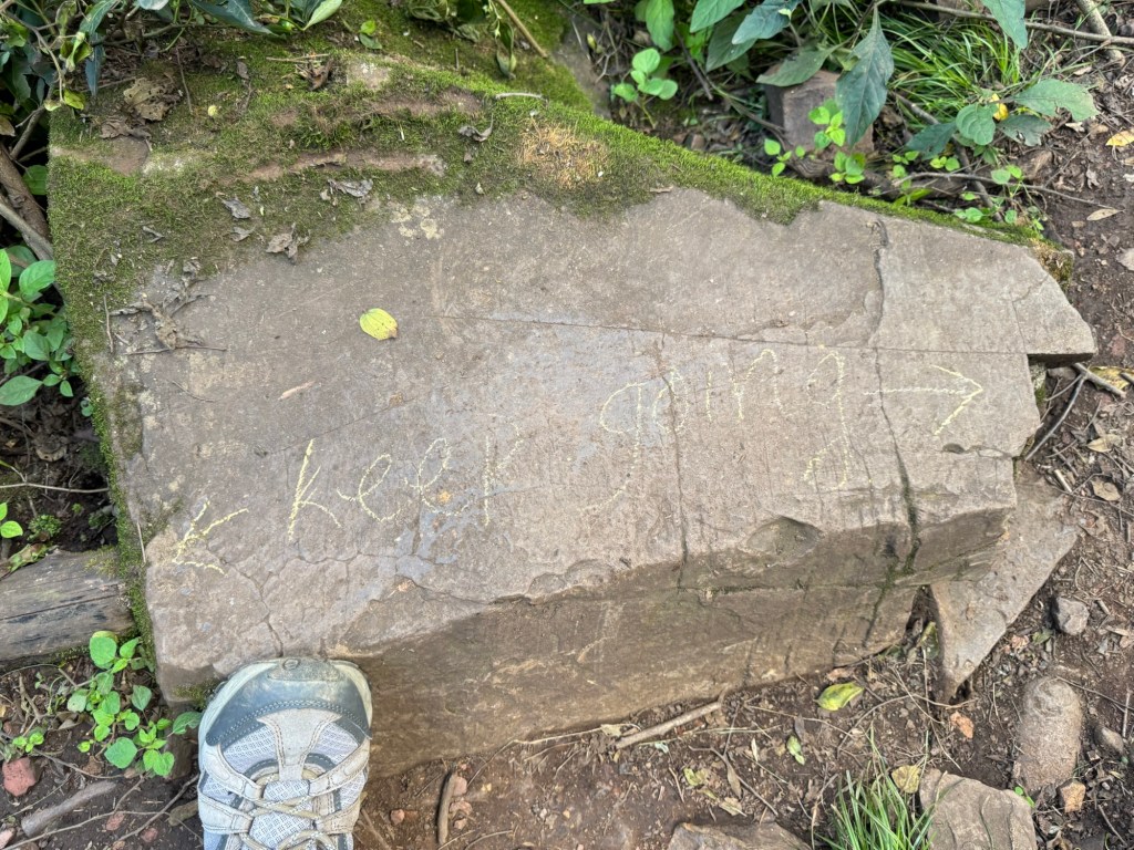 Here are some pictures from my hike this afternoon. This was my reward after I was 75% complete with report cards. I’m so happy to have my hiking boots now! And I loved that somebody wrote words of encouragement on that rock!