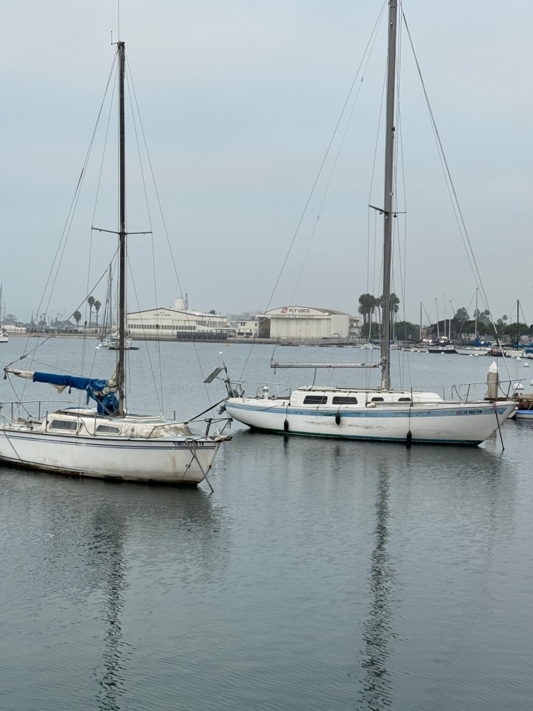 After four glorious days in New Jersey spending time with some of my closest people, it was time to go see my girls! Taking only the clothes I was wearing (I wore my girls’ clothes the whole trip!), my bags stuffed with gifts for my three daughters and their three partners, I boarded a plane again, this time to cross our country to the West Coast. I read half the book that Suz had given me, watched two episodes of breaking bad, took a cat nap because I had been up so late the night before, and suddenly I was in California! G‘s boat had come into port, so my middle and her husband grabbed her and then they came to the airport for my oldest, who had landed a bit before me. She and I met up and went out to the car. All three of my girls together, something I absolutely treasure!