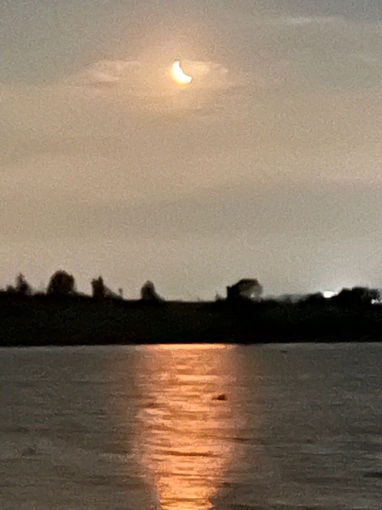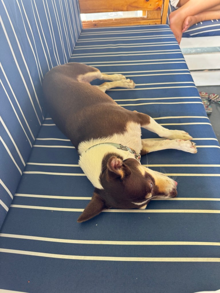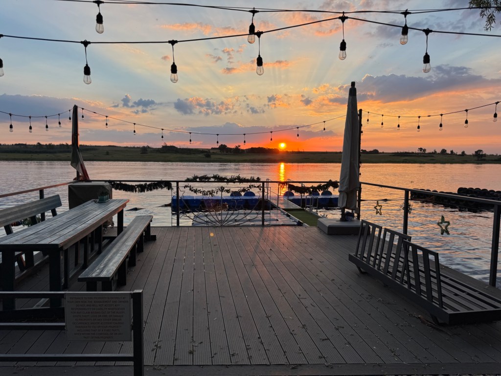 After we settled in, she made us the best gin and tonic I’ve ever had, and we sat on the back patio, enjoying the sunset and chatting. Eventually, we brought some dinner out, as well. Later, we walked along the shore and visited some of her neighbors.