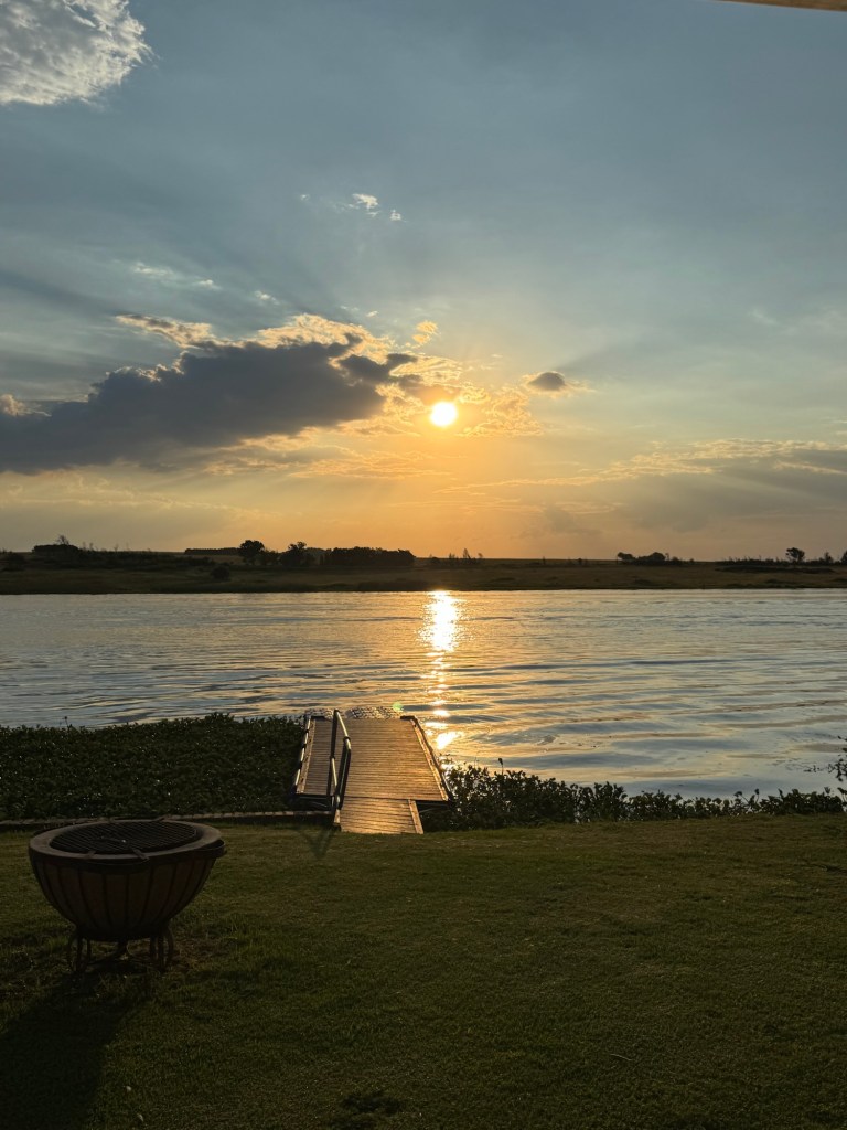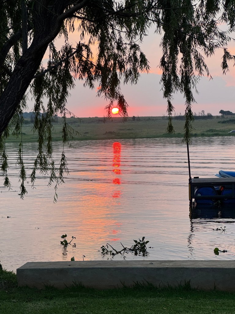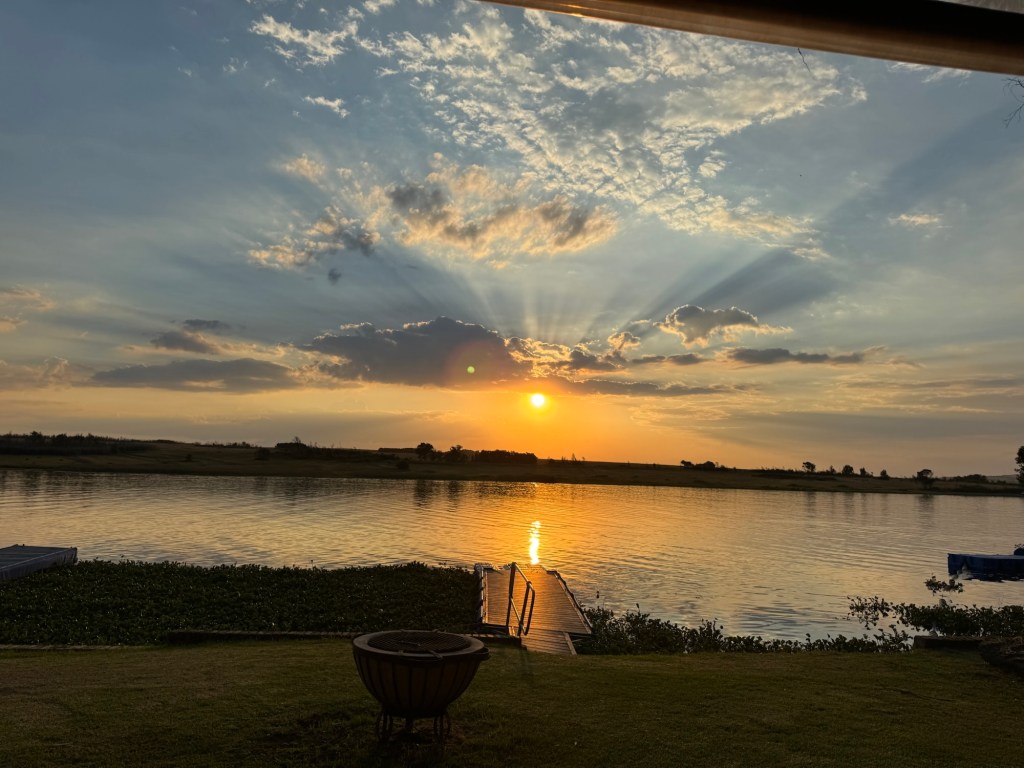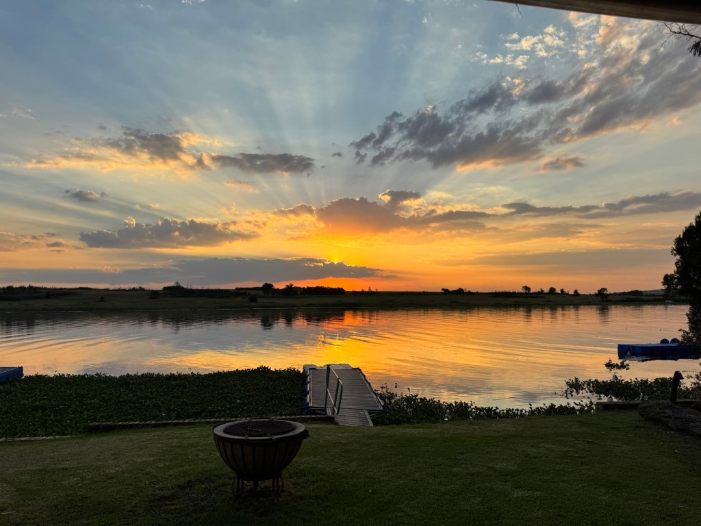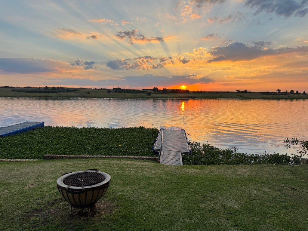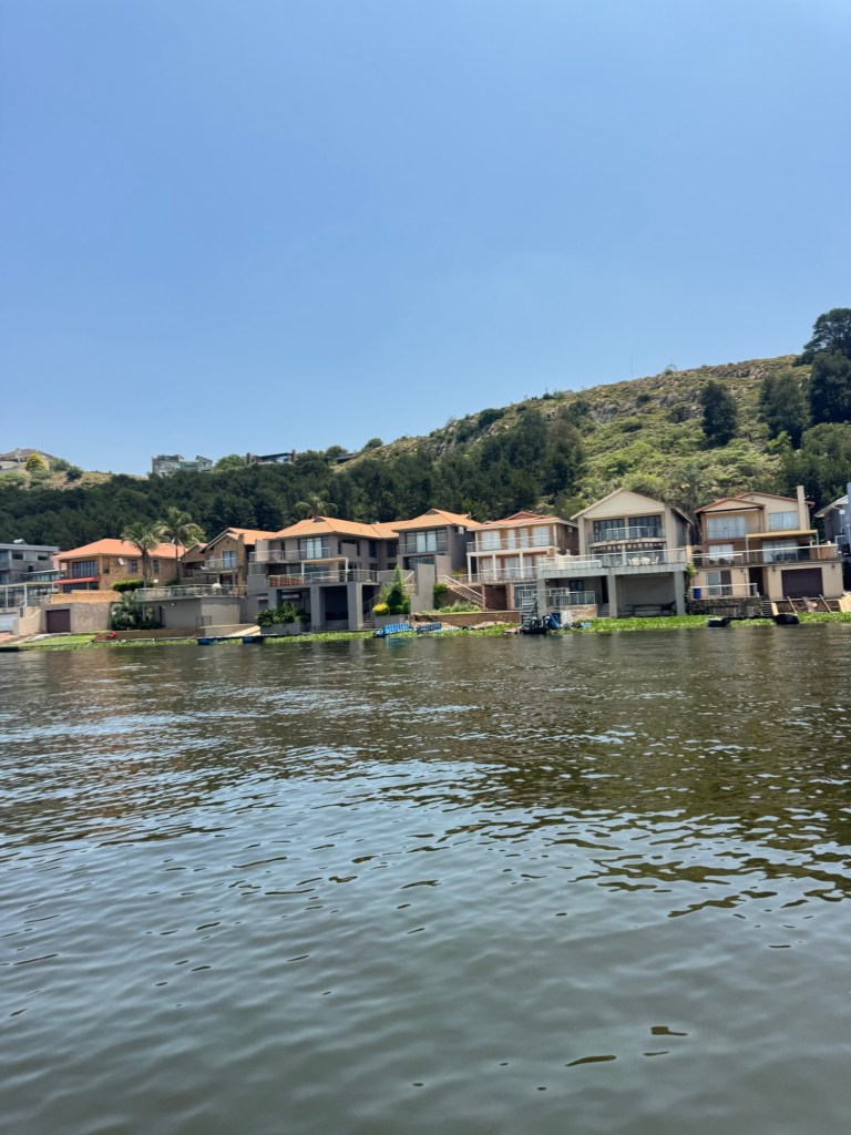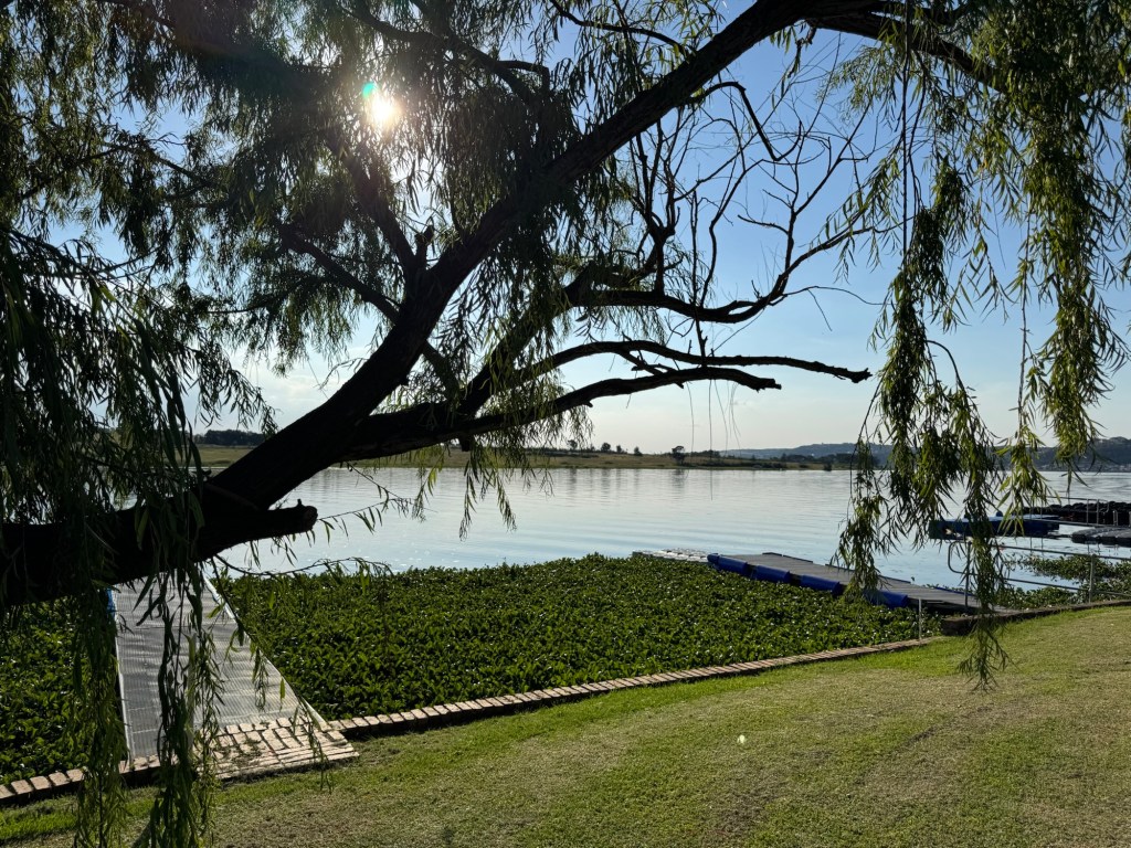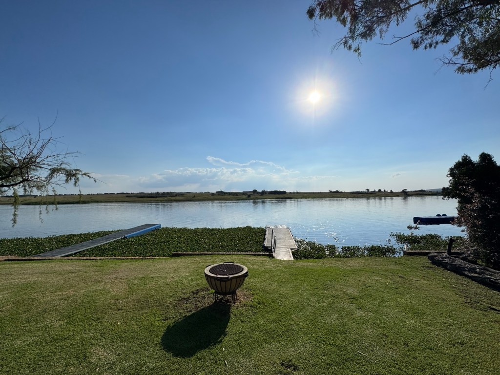 After school, my friend Ellen took me up to the Bronkhorstspruit dam where she has a weekend house. It is about an hour east of Pretoria. We went through a toll booth that was just a credit card tap. It was right on the water at the curl-de-sac. . The house was wonderful and the location serene.