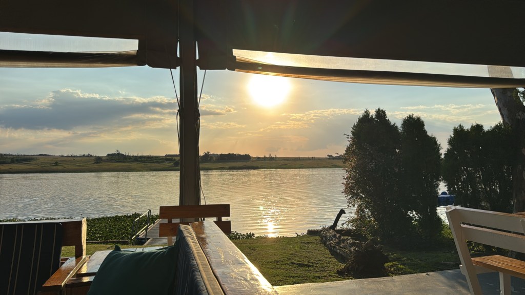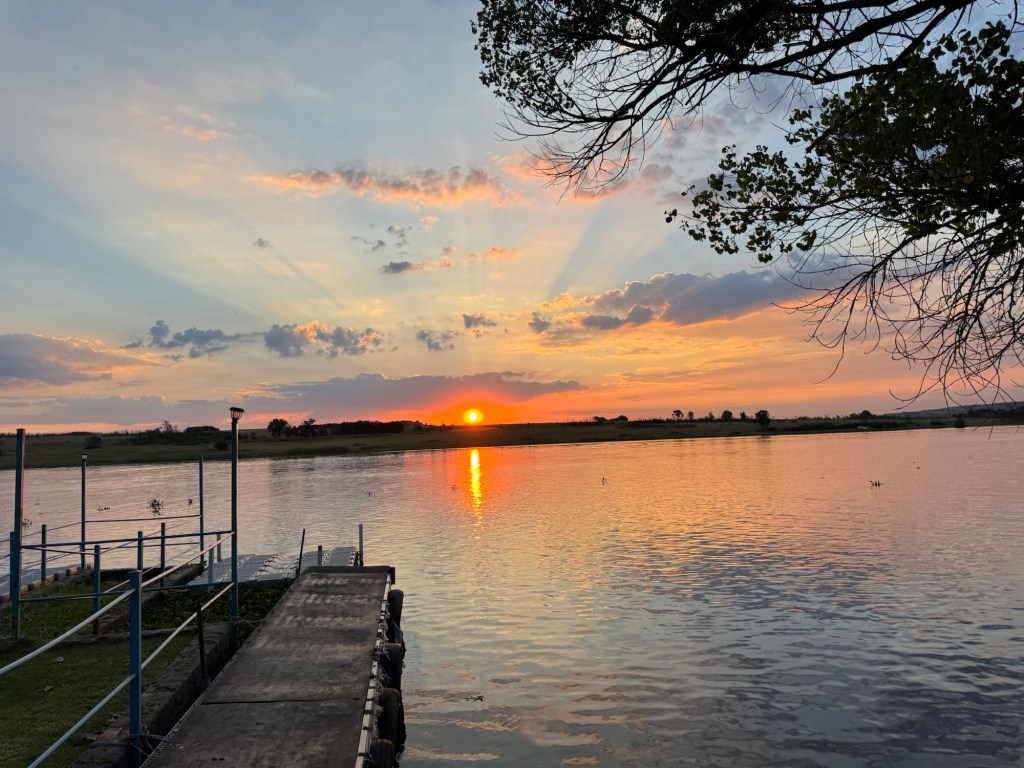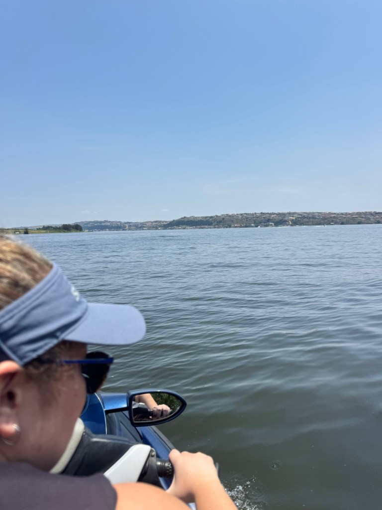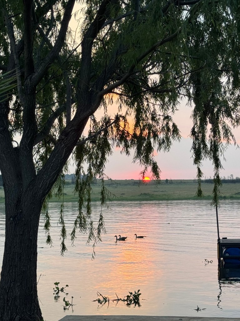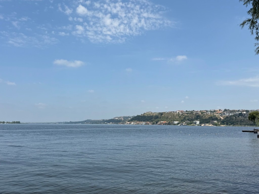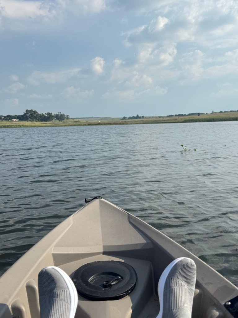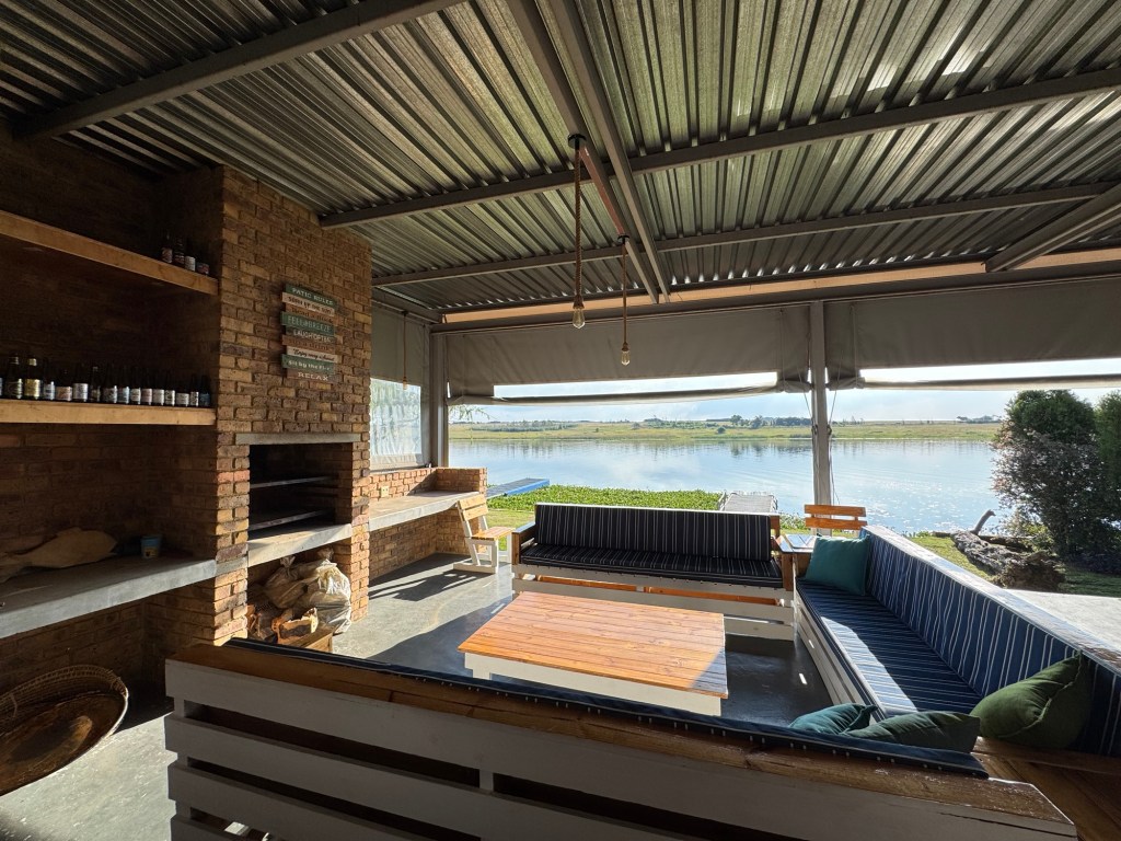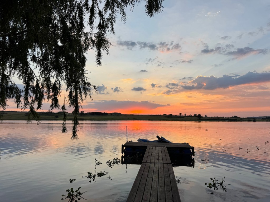 After school, my friend Ellen took me up to the Bronkhorstspruit dam where she has a weekend house. It is about an hour east of Pretoria. We went through a toll booth that was just a credit card tap. It was right on the water at the curl-de-sac. . The house was wonderful and the location serene.