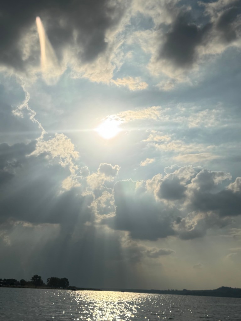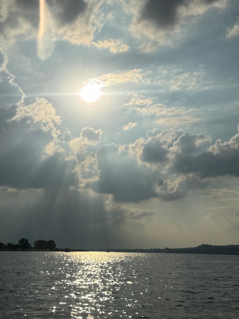 That neighbor and her dad let me borrow their kayak and I rowed out on the dam for an hour and a half. Ellen texted to say that it looked like a storm was moving in, which confused me because it was so nice and sunny. I looked back over my shoulder only to see huge storm clouds rolling in! I was pretty far away, so I rowed like a maniac across the lake, avoiding the jet skis and motor boats, back to the house.
