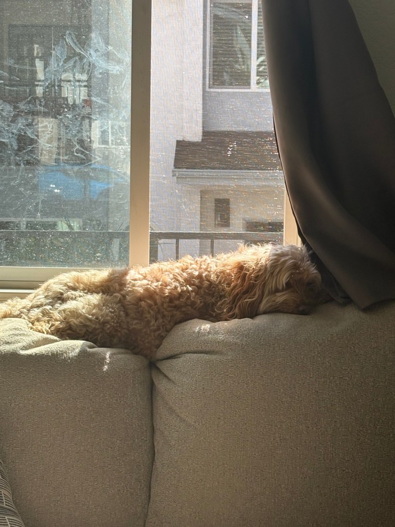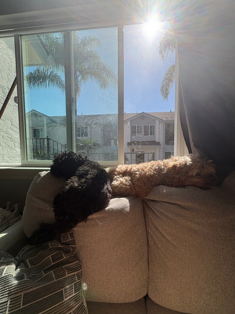 I went directly to Eunine’s estates to walk since it was going to get dark and her development is huge and well lit. I walked for about a quarter mile up in the reserve and then another few miles throughout the neighborhoods with streetlights. I got to catch up with Jan and later Gigi. She sent pictures of the dogs enjoying the sun. She was out walking them and buying her favorite sourdough bread.