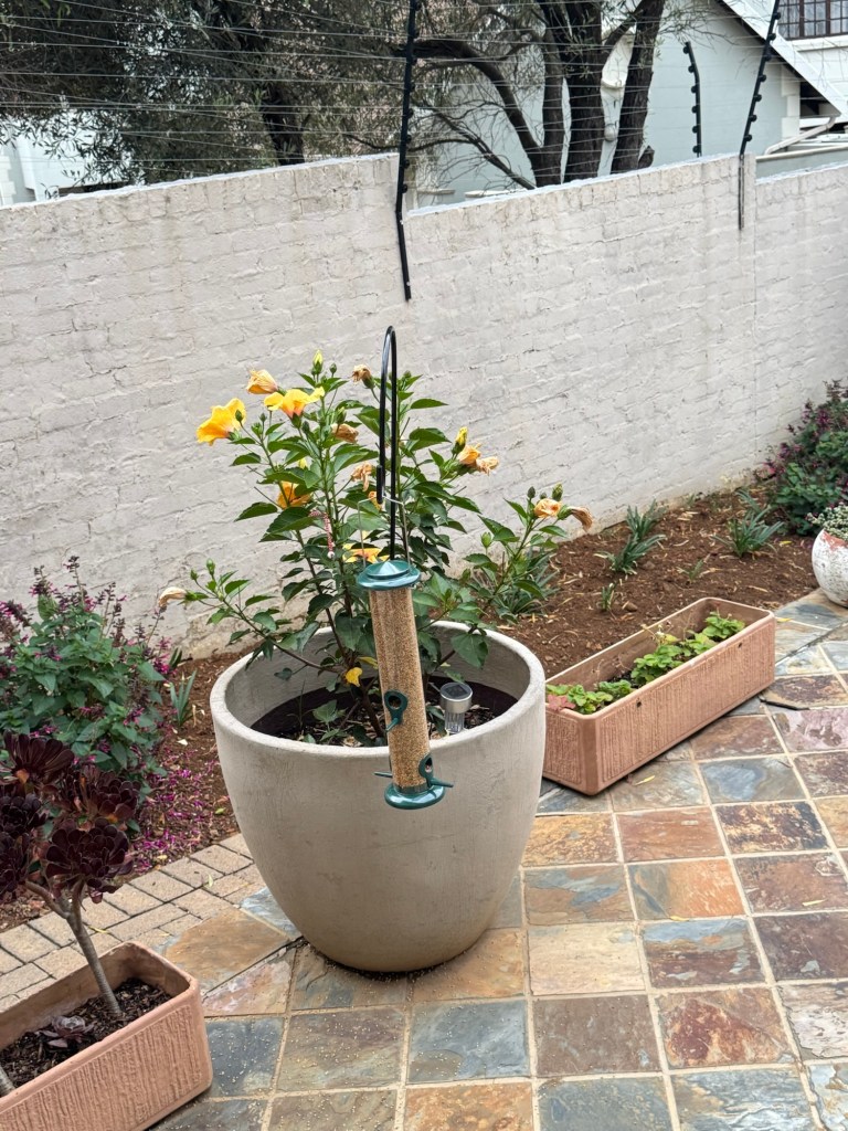 I stopped at Builders Warehouse to find a fastener for my bathroom mirror that is no longer part of the sink cabinet. No luck, but I love that place. I can’t leave without at least one healthy houseplant and one marked down plant that gives Charlie Brown tree vibes. I also found two cool plants for outside. And a bird feeder. And birdseed.