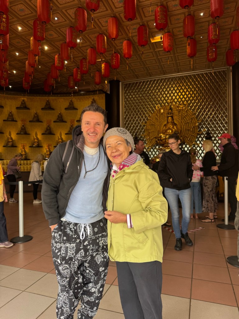 We received our flowers and made a “wish” with our offering before Buddha. I didn’t understand it all, but was mesmerized and open to it. We moved onto the candle lighting ceremony at the big temple, which was also moving. Feeling like this woman’s story of her mother was at the root of my emotions, I meditated into my lit candle and asked for an open heart. The speaker said that we must shed our fear, ignorance and confusion and embrace love, peace and compassion. I loved these words. We brought the candles forward to offer and I voiced my desire. Again, extremely centering and grounding.