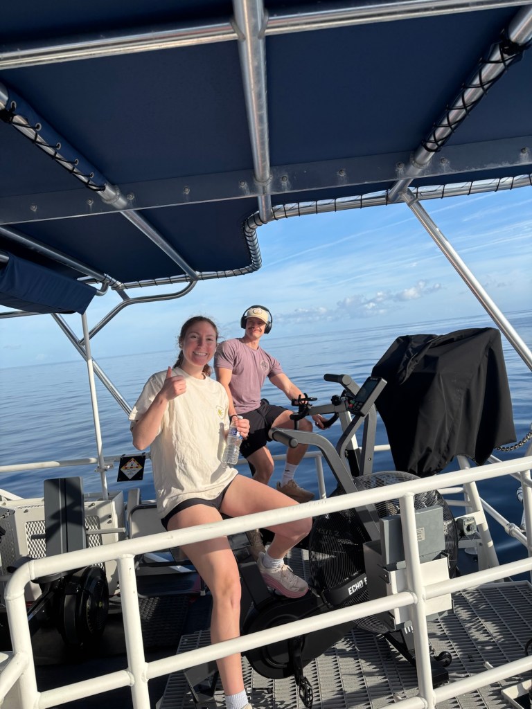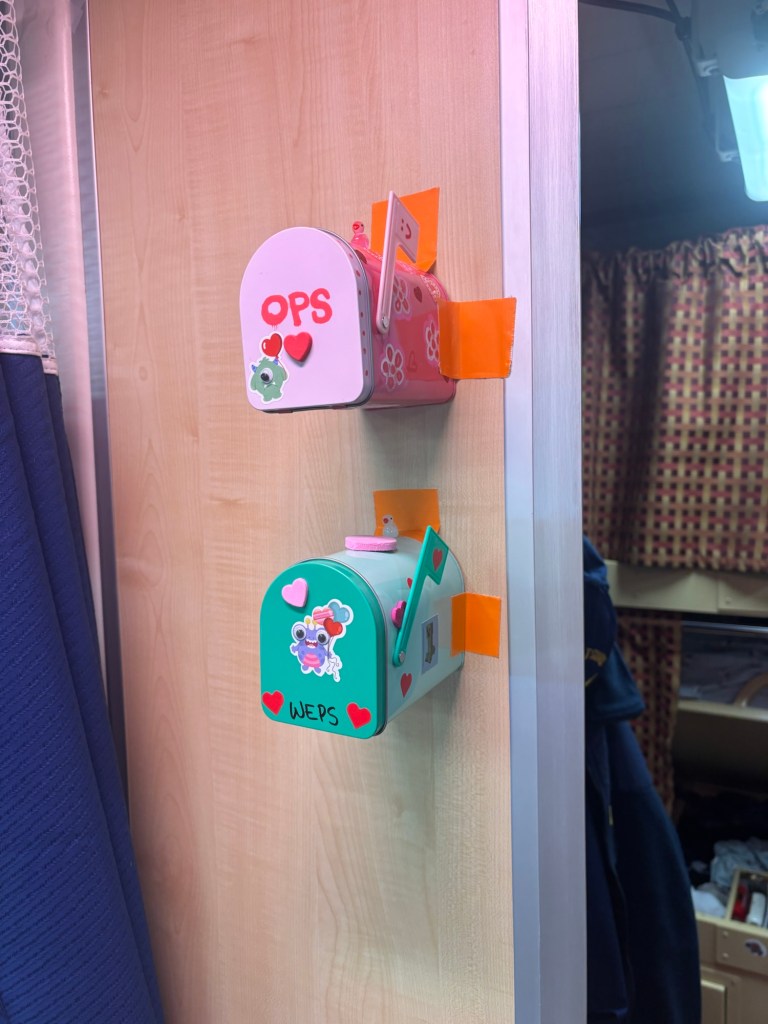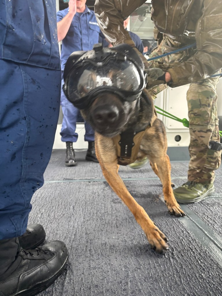 G3 sent pictures from her boat off of San Diego. She is the morale officer and does cute things to keep everyone upbeat and positive. She also got to work out on the front of her boat! They even had a Coast Guard dog visit!