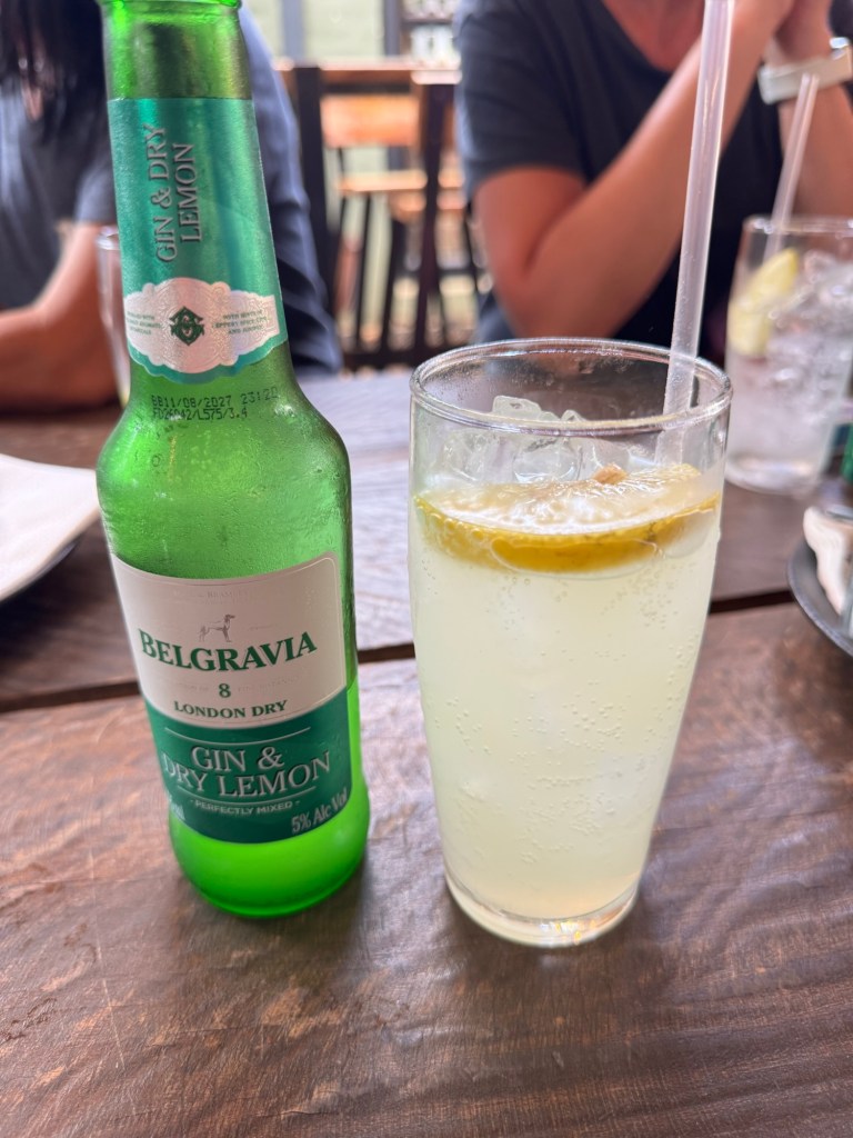 Anyway, when that was done, I went out for happy hour with a few colleagues. Ellen‘s parents have been visiting, so they treated us to dinner and drink drinks. It was a pleasure getting to know them. Despite their age, they are so adventurous and travel a good deal. I had my gluten/dairy cheat with a very thin crust pizza and a lemon gin and tonic.