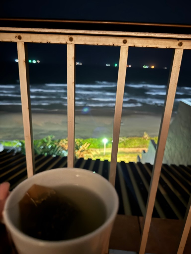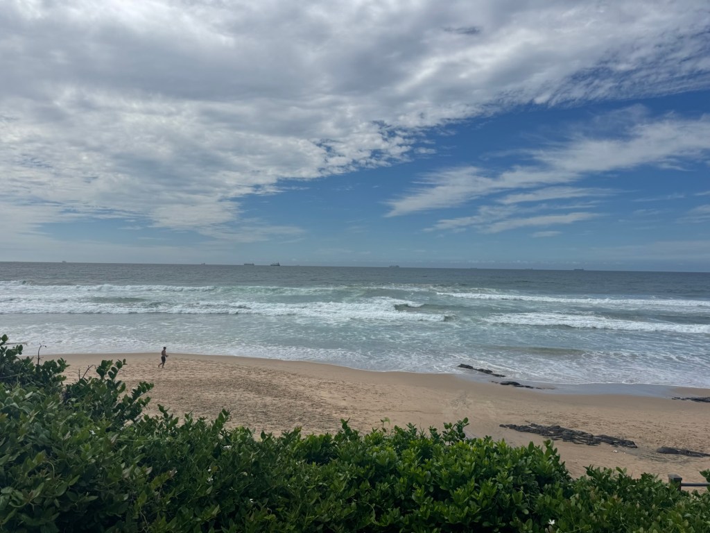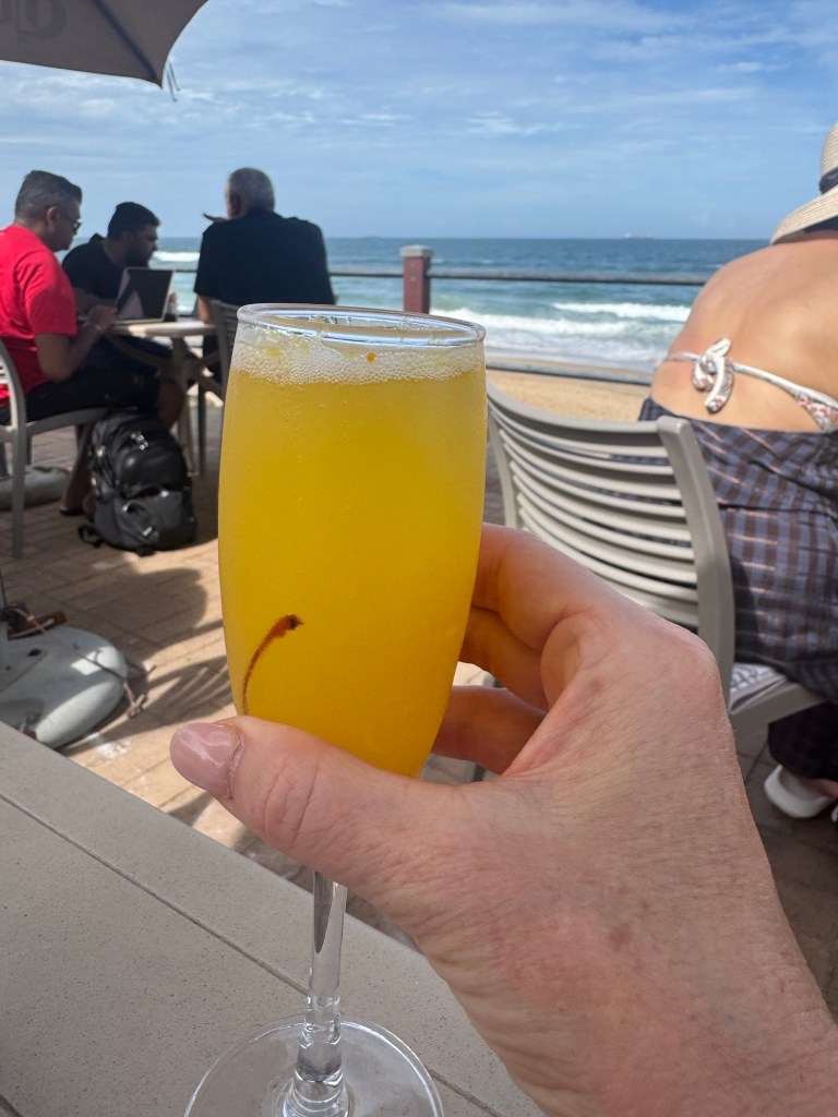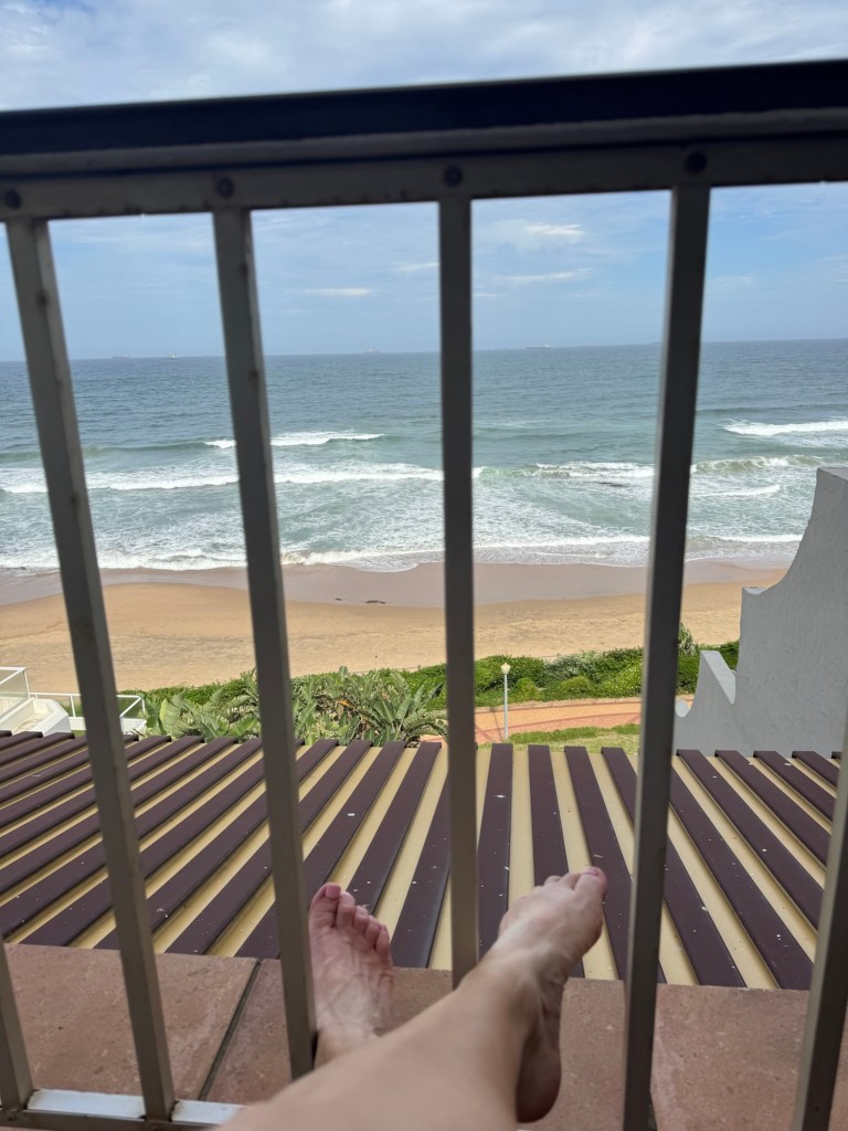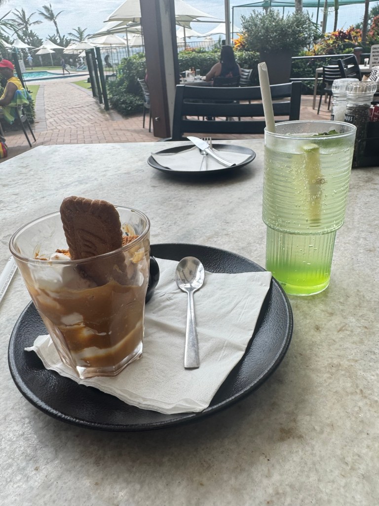 I took an Uber from the airport in Durban up to Umhlanga. I couldn’t check in until two, so I went and got a dirty chai latte and an affogato while overlooking the ocean.