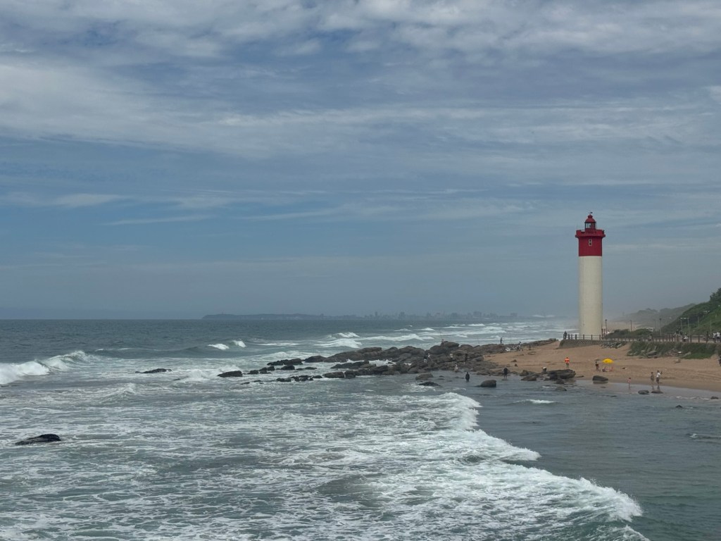 Durban lies on the eastern coast of South Africa, along the Indian Ocean. It is warm and humid and the ocean water is also quite warm.