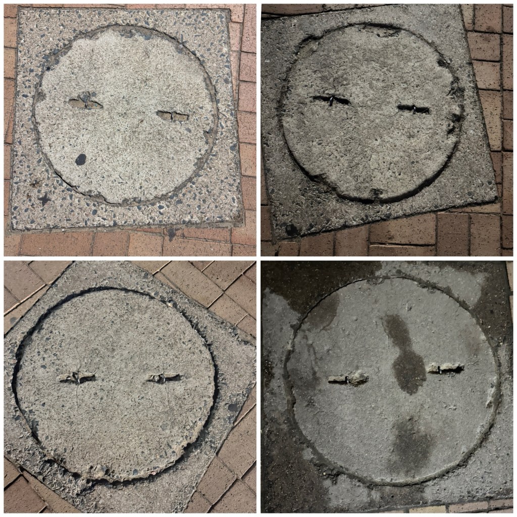 While walking from dinner back to my flat via the promenade, I came upon a humanhole cover that made me stop, back up and snap a picture. When I came to the next, I looked closely and snapped. Now I was anticipating them. Very few disappointed. I even walked an extra quarter mile past my place because I was so taken with this inexhaustive study of mine that I lost my sense of time and place.