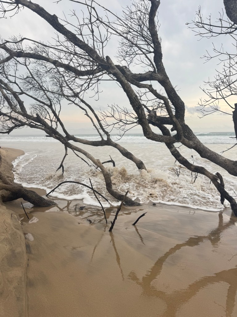 Afterwards we went and checked in at our glamping site in Trafalgar (lots of British names around). The tent/cabin was fabulous! We dropped our stuff and walked to the beach, which was just on the other side of the lagoon and some woods from our back porch.