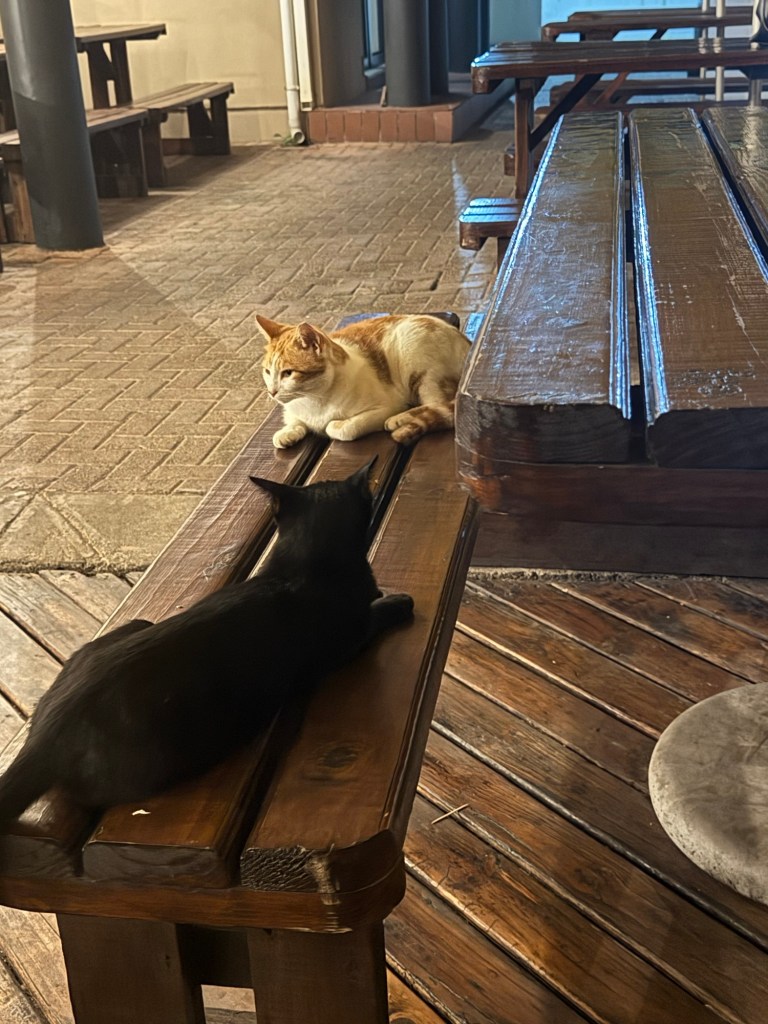 That night we went to dinner at The Wreck, which was right on the beach. It was delicious, and my beer was immense! Some kitties came to sit with me at the end of our meal.