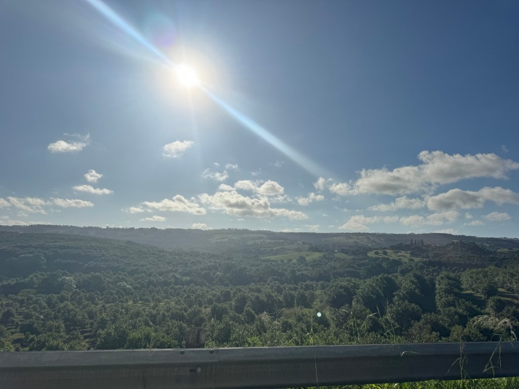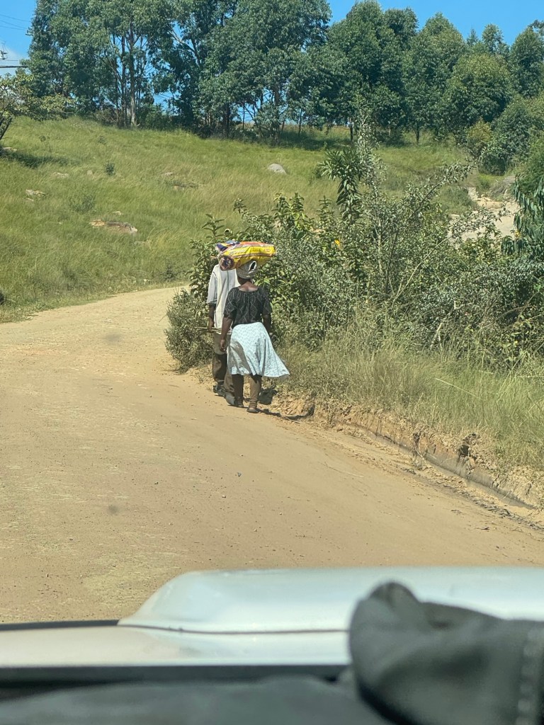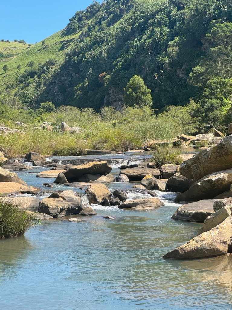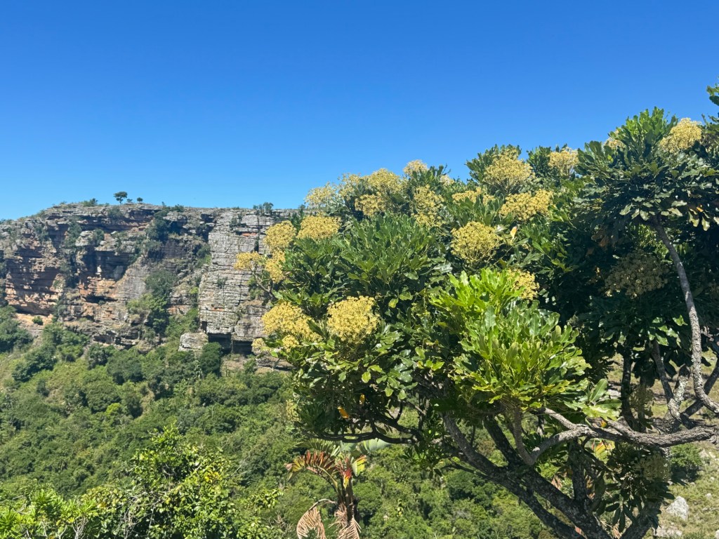 Once we’d had breakfast, we started on today’s adventure, a visit to the Mnyameni Gorge. Although it was not far from where we were staying, it was a long, hard drive but through fascinating land. It took an hour and a half to go 29 miles with little to no traffic. There isn’t a direct route down the coast, so you have to turn sharply inland and then make your way south again. Once you enter the area, the road is no longer paved and has deep divots, large potholes and very rocky terrain. It was slow going and required patience and concentration.