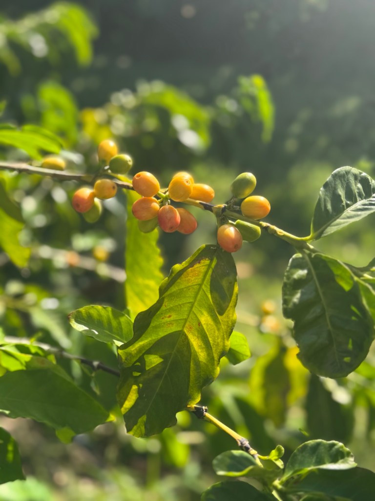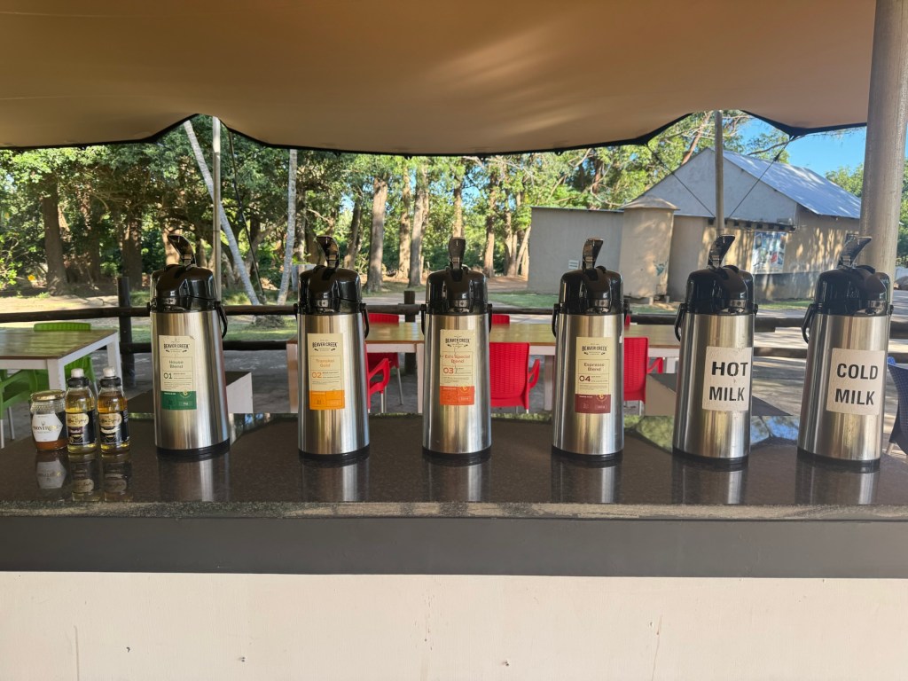 On the way back to camp, we stopped to buy food for a braai on the back deck. I had seen a coffee shop and was desperate for a chai latte, so we sought the spot out atop a high hill. The views were stunning. It turns out they had no tea, so I had a milk and sugar heavy coffee (my third in this country…and in my life!). The farm grew coffee beans and it was a beautiful walk around.