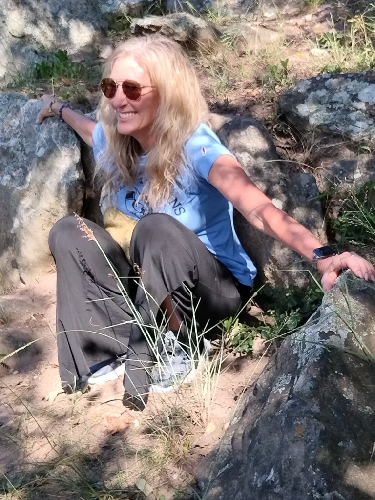 We drove down to the base of the gorge, which again brought on my fear of heights as I tried not to look over the side of the cliff. The markings and map were not terribly clear, but we eventually found the start to the hike and Walter shocked me by choosing the longest one. We were getting a late start and I didn’t think he’d like to hike that far, but off we went. It was quite hot in the direct sun, but we spent much of the time in the forest, walking mostly silently along the path. It was very rocky and at times we scaled boulders. There was a good amount of elevation and we eventually came to a waterfall at the bottom.
