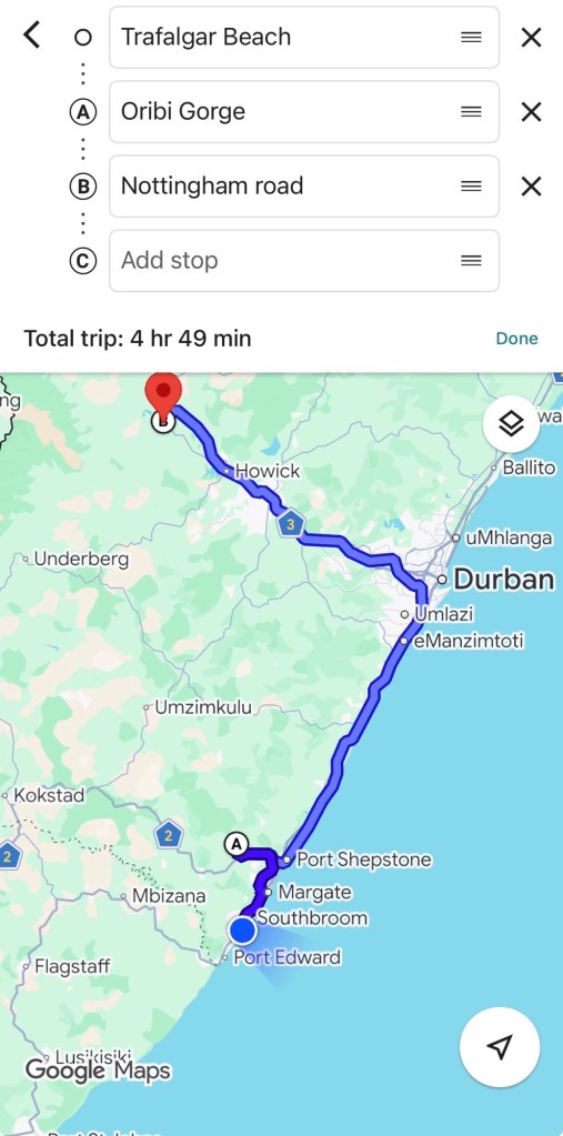 We drove up to Oribi Gorge, stopping first at the Leopard Rock cafe to see the view of what we’d be hiking and get the lay of the land. To navigate, we went back up to Durban and then starting cutting inland. Several of my friends recommended this gorge and I was extremely excited.