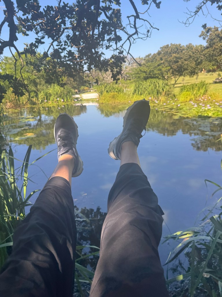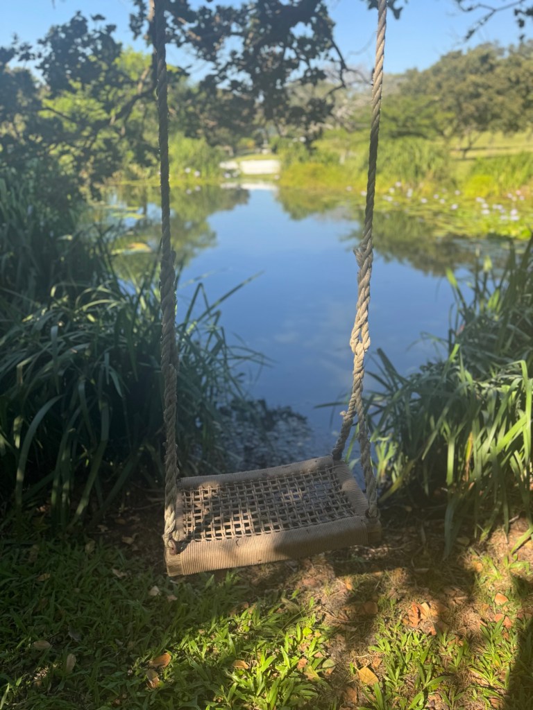Before we took off, I walked the grounds and took some final pictures. I found a swing and thought, If you come upon a swing, you must have a sit. And I did, feet sailing out over the little pond.