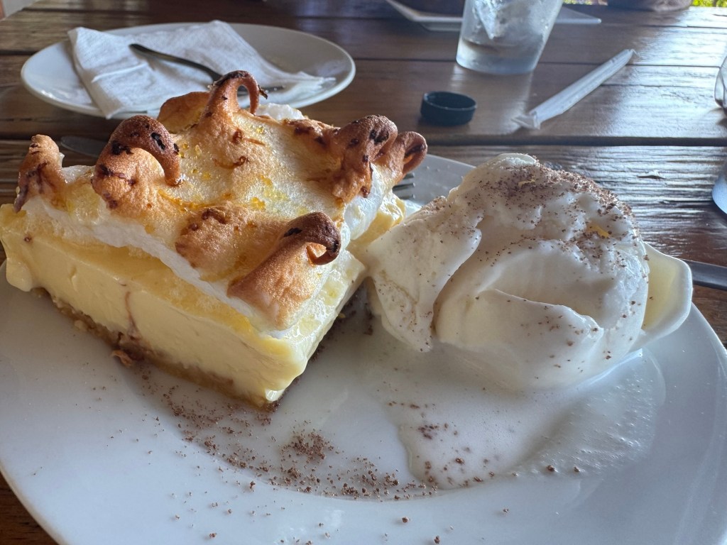Afterwards, we drove back up to the cafe, but the kitchen had just closed at 3:45 for food and was only serving cool drinks (what they call soda here) and dessert. I had no problem shifting gears to an exquisite lemon meringue pie. The views from the deck were absolutely awe inspiring.