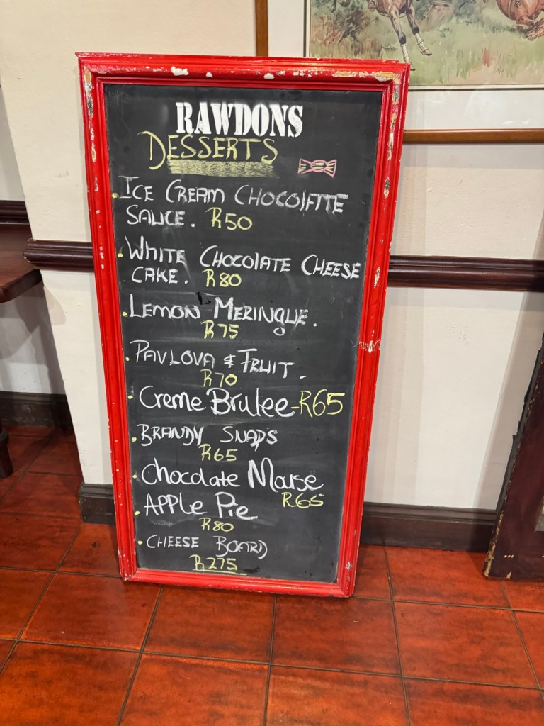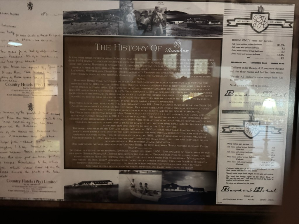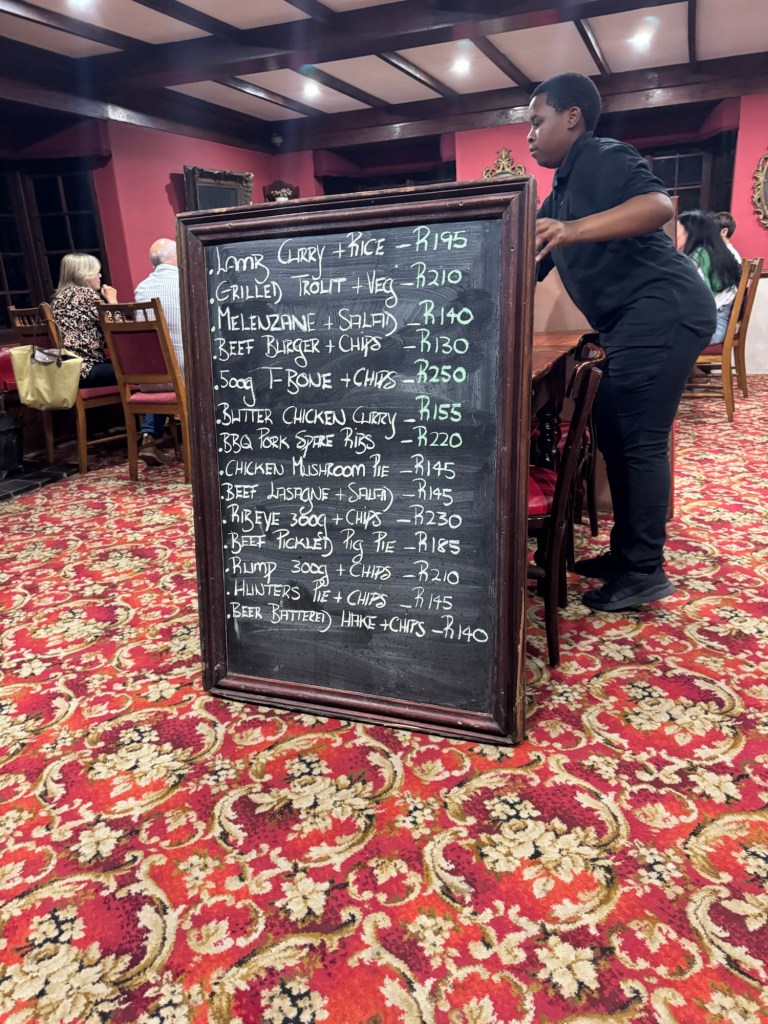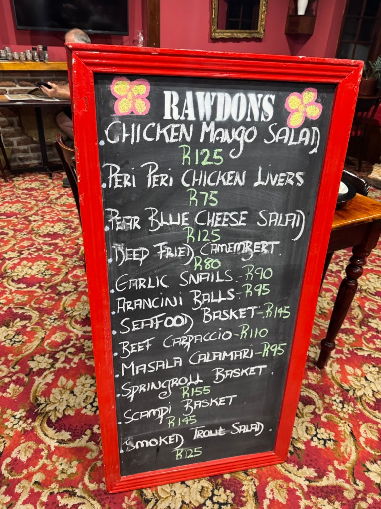 We then drove several hours inland to our inn/brewery on Nottingham Road in Midlands Meander. It was so beautiful inside and out and had a great story. We checked in and went straight to dinner. Everything, including the beer, was excellent.
