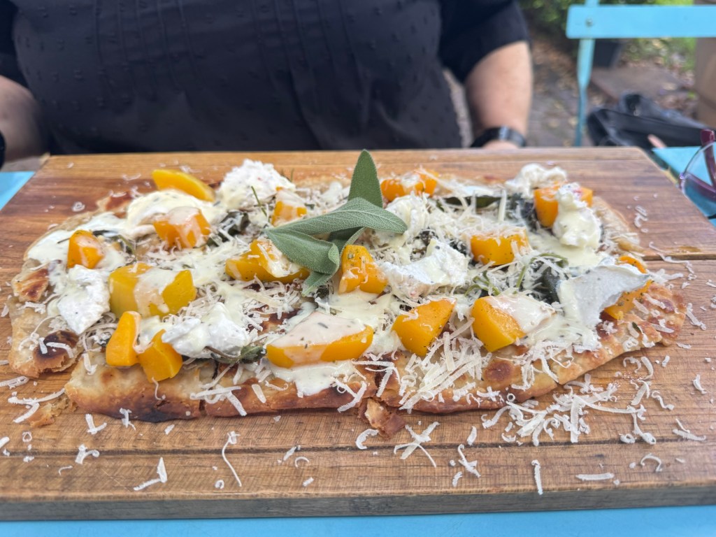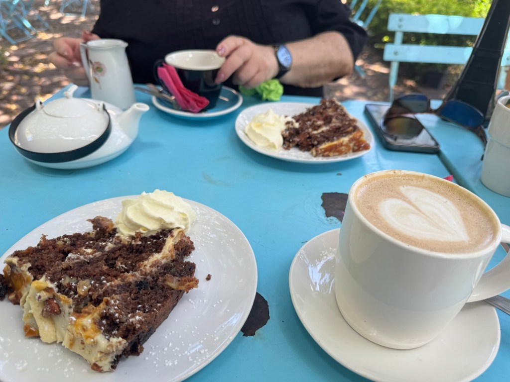 We sat and chatted for hours in the beautiful weather and did lots and lots of catching up! The woman behind us was having a slice of carrot cake. She said she and her dog come almost every week for a slice. That’s all we needed to hear to give it a try. Believe it or not, that was one serving cut in half for us!