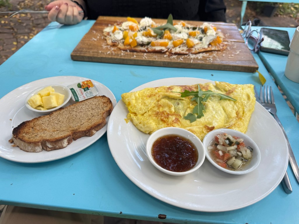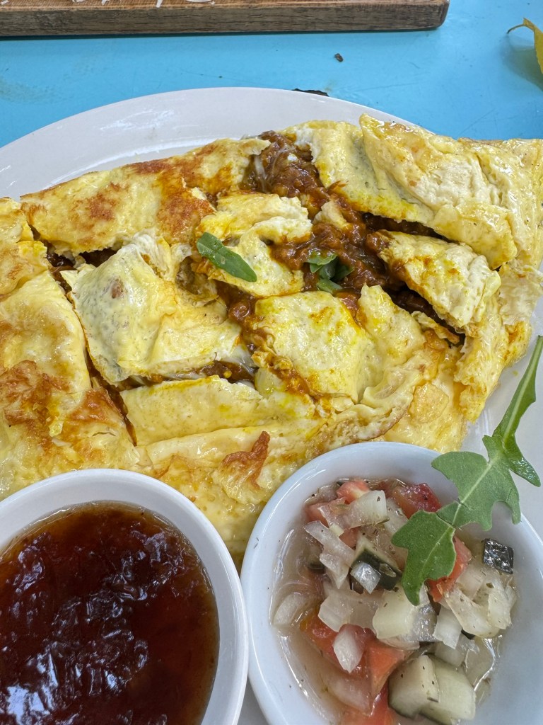 I picked up Sue last Sunday morning and we headed to one of her favorite cafés about 15 minutes from our houses. Chocolate et Cafe is a nursery, café, and event venue in Lynnwood. As with almost everything, South Africa, it has both indoor and outdoor seating. I found it so charming and the food was delicious. I had a bobotie, a South African dish of spiced minced meat, which I had in an omelette.