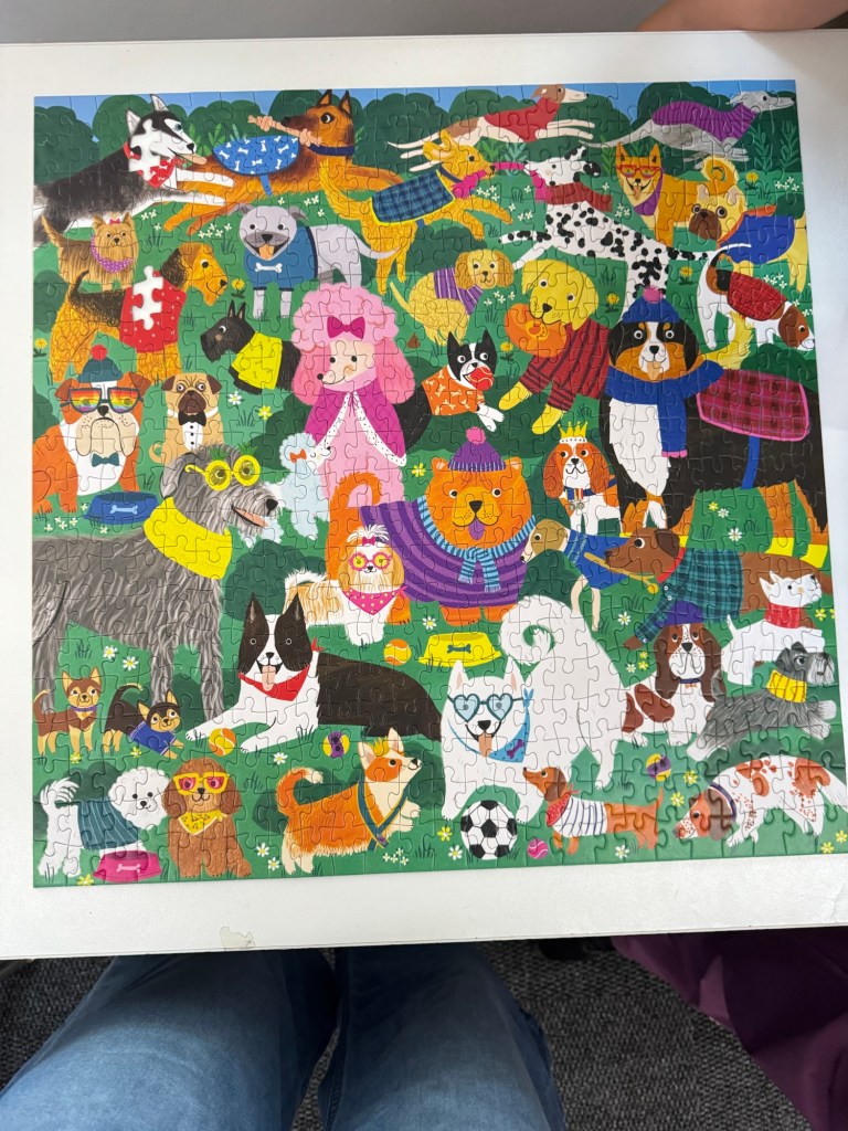 When the parents came in, the kids were excited to show them the puzzle. Many said they hadn’t done a puzzle in so long. I shared that I would always have a puzzle out on the table at home when my girls were growing up and they loved them. Each of them as adults always has a puzzle going in their home. Such wholesome goodness, such a feeling of accomplishment, but also being able to stay with a task that takes a long time to complete. Stamina. I hope this brings puzzles into at least some of their lives.